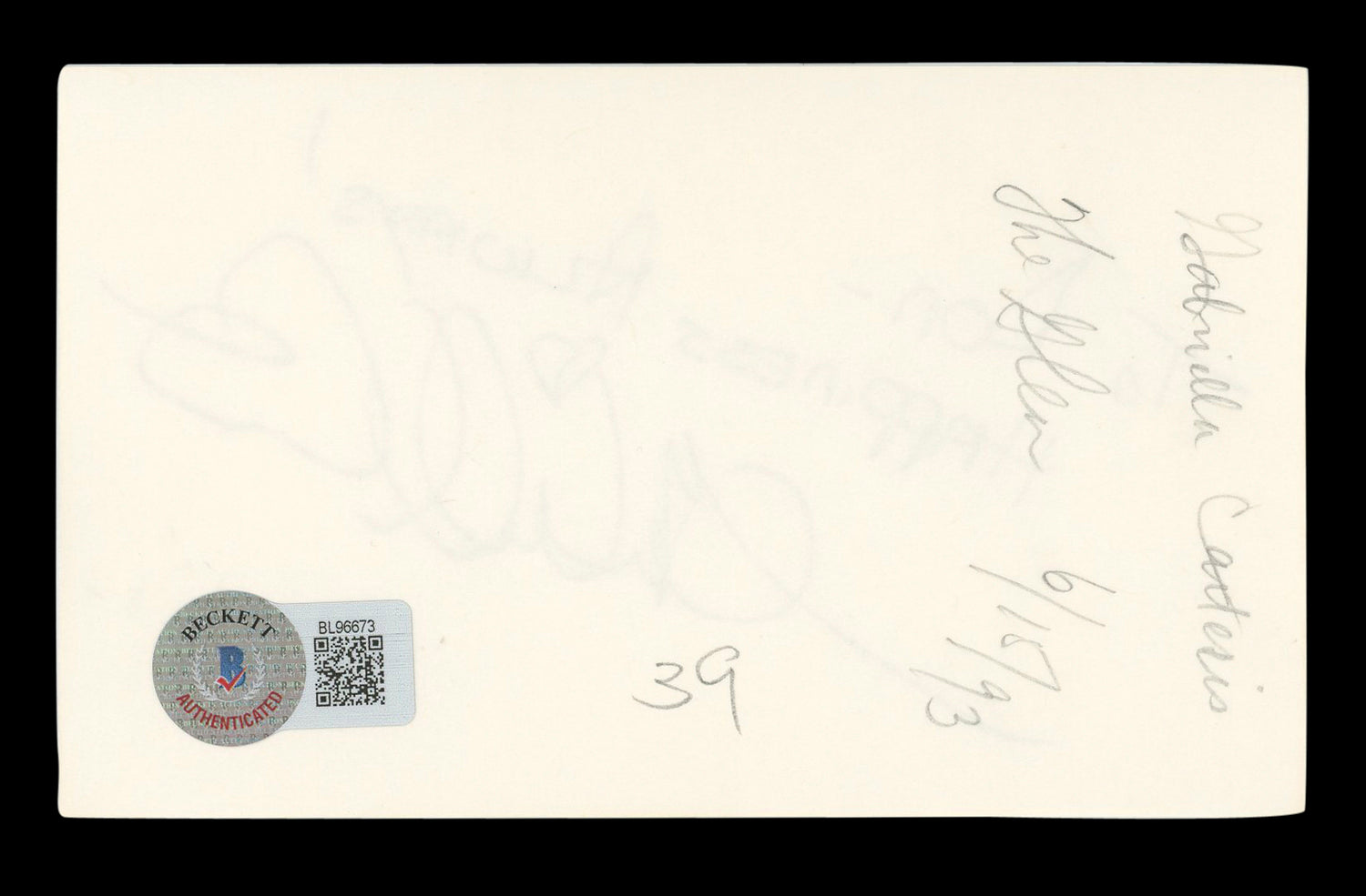 - Authenticity Guaranteed: This autograph has been 100% authenticated by Beckett Authentication Services (BAS) and features an affixed BAS hologram sticker for verification.