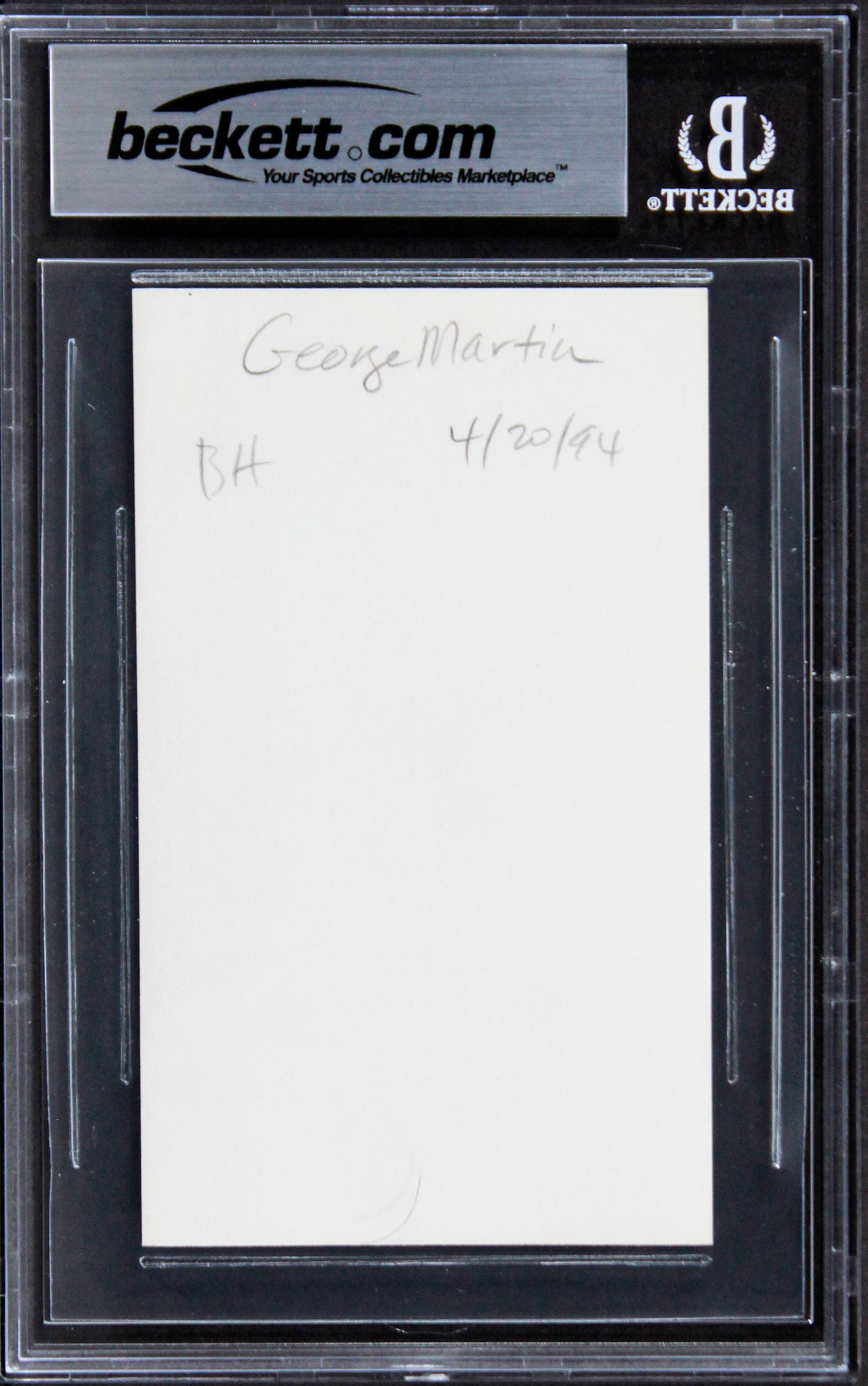 Own a piece of history with this George Martin Autographed 3x5 Index Card – a must-have for dedicated collectors and autograph enthusiasts. This authentic signature has been personally hand-signed by George Martin and is 100% certified genuine, authenticated and slabbed by Beckett Authentication Services (BAS).