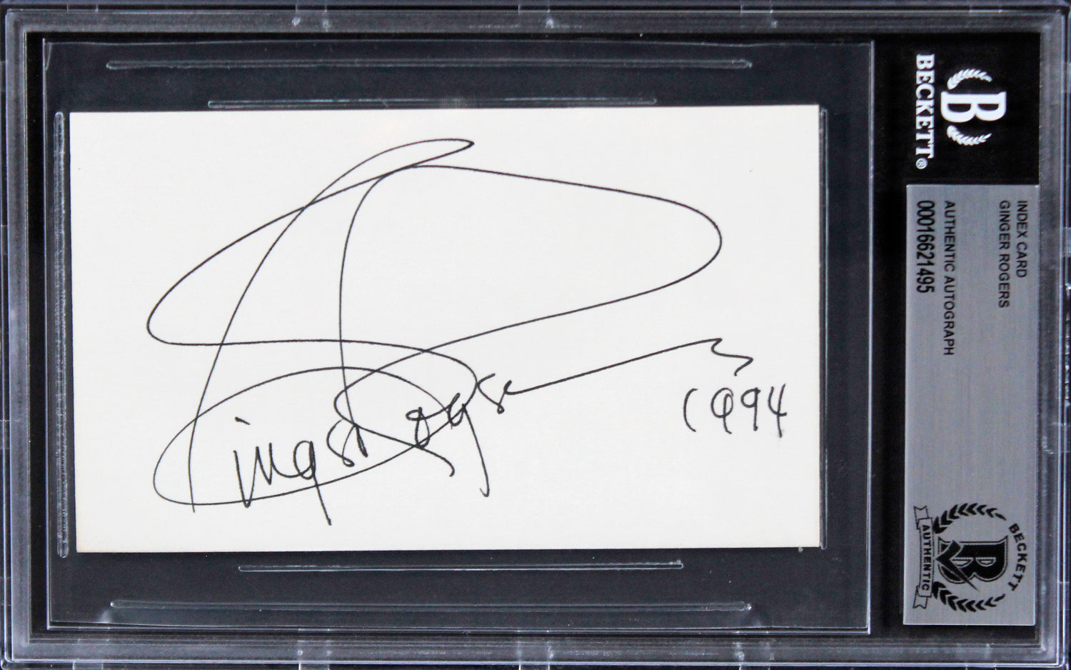 Ginger Rogers Kitty Foyle "1994" Authentic Signed 3x5 Index Card BAS Slabbed