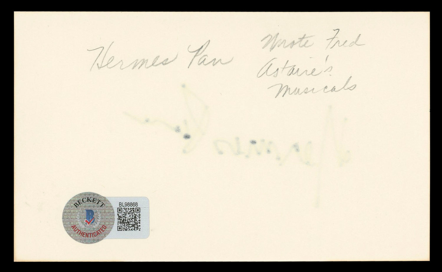 Whether you're a dedicated Hollywood memorabilia collector or searching for a unique gift for a classic film fan, this authenticated Hermes Pan signature is a timeless treasure. Secure this historic piece today!