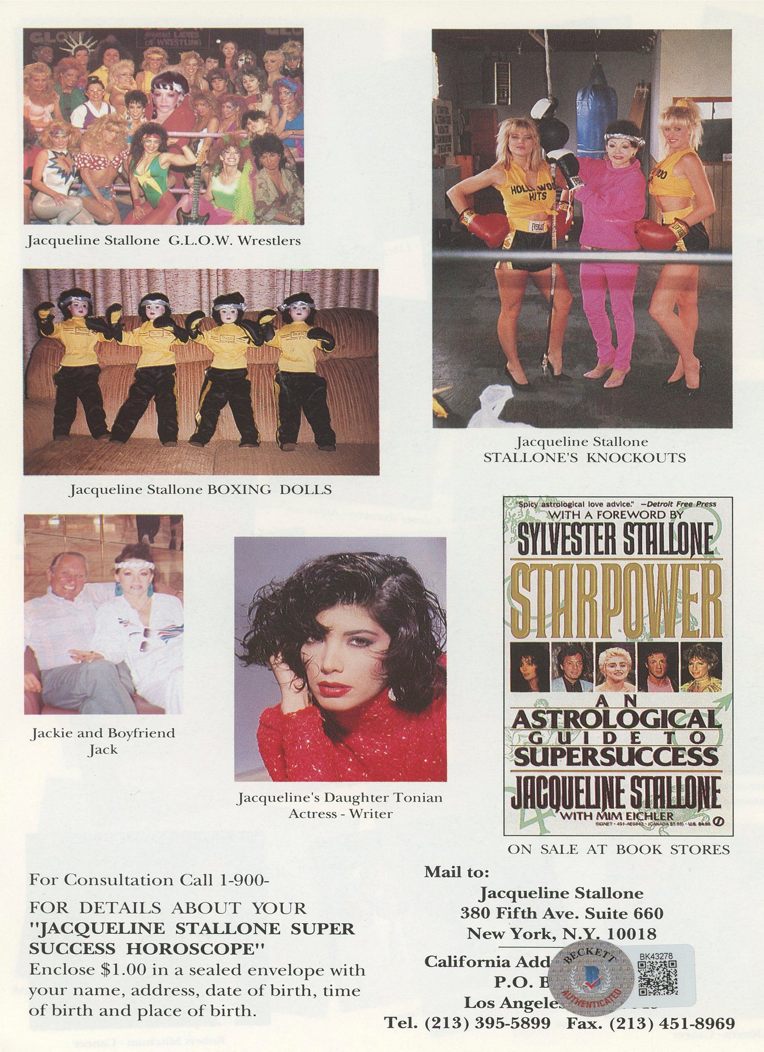 Jacqueline Stallone Astrologer Signed 5.5x8.5 Magazine Page BAS #BK43278