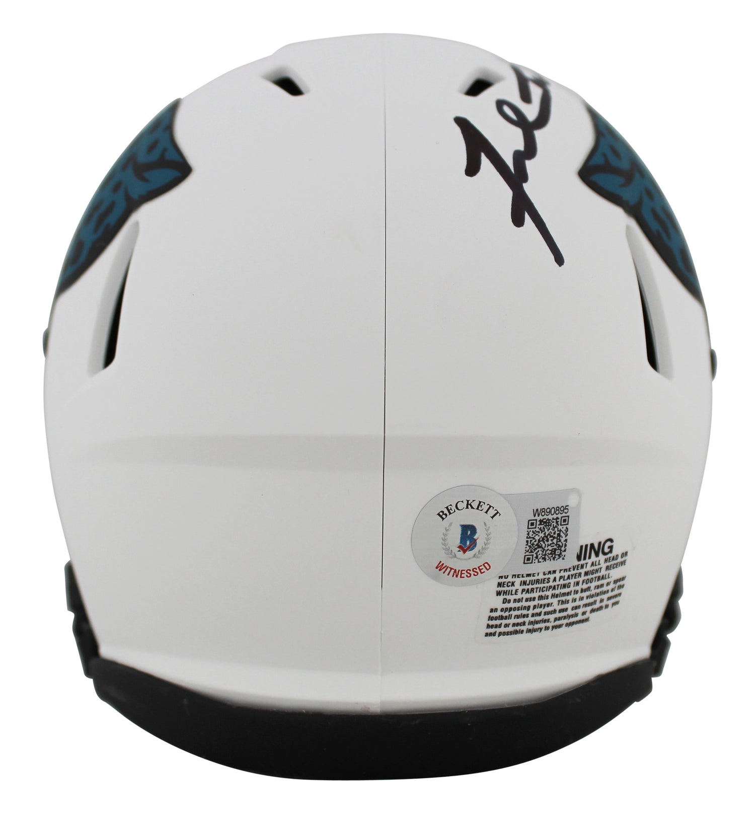 Own a piece of Jacksonville Jaguars history with this Fred Taylor Autographed Alternate Lunar Speed Mini Helmet. A standout collectible for Jaguars fans and memorabilia enthusiasts, this signed mini helmet is 100% authentic, backed by Beckett Authentication Services (BAS).