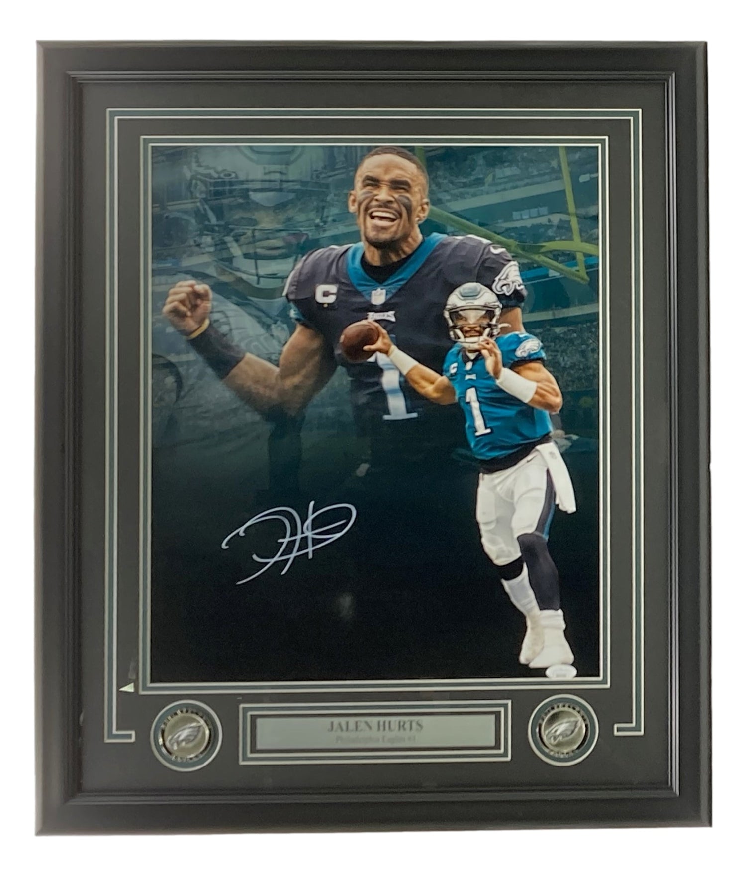 Jalen Hurts Signed Framed 16x20 Philadelphia Eagles Throw Collage Photo JSA ITP
