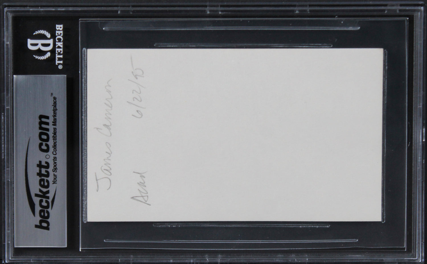 James Cameron Titanic Authentic Signed 3x5 Index Card Autographed BAS Slabbed 1