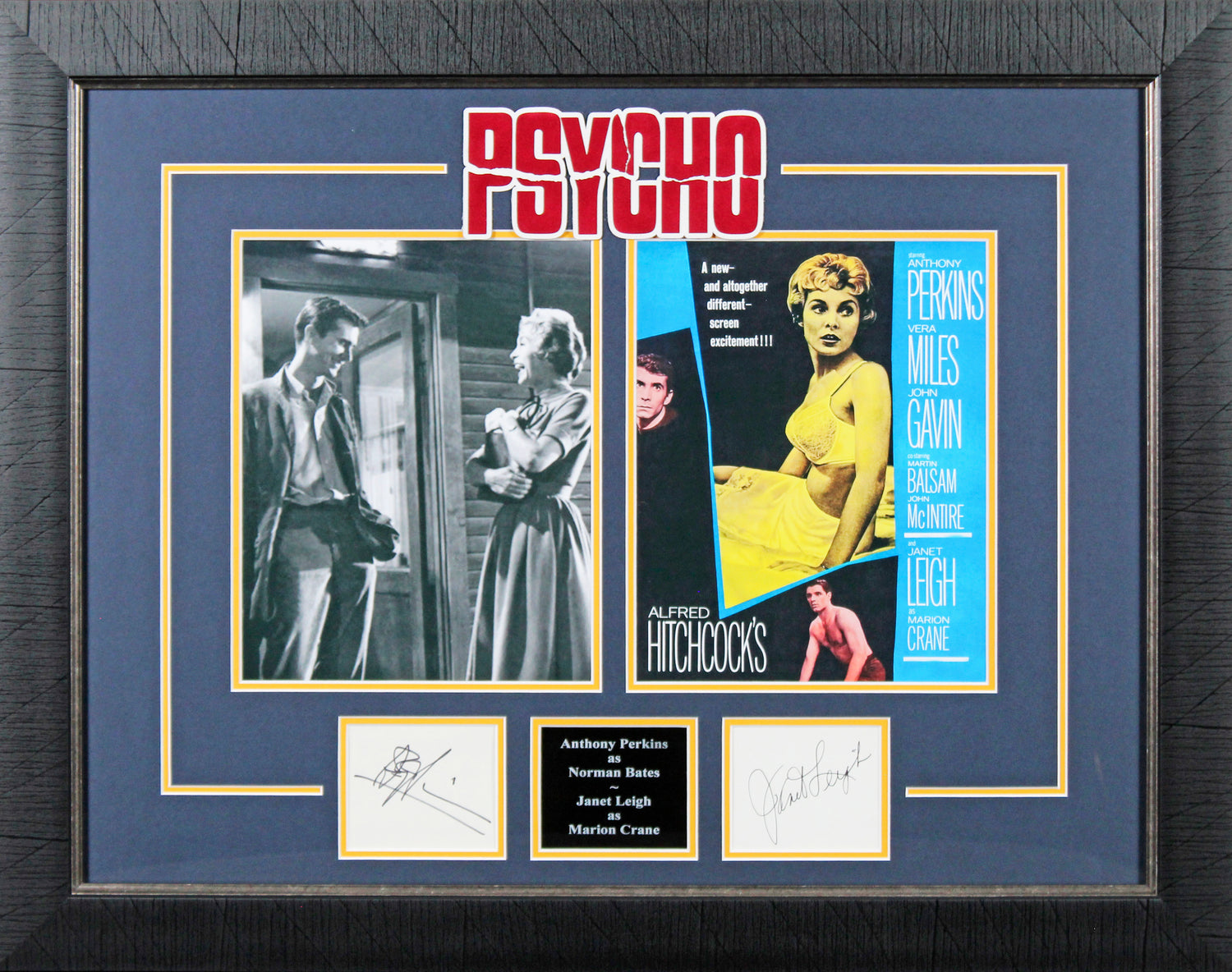 Janet Leigh & Anthony Perkins Psycho Signed 3x5 Index Card Framed Display BAS