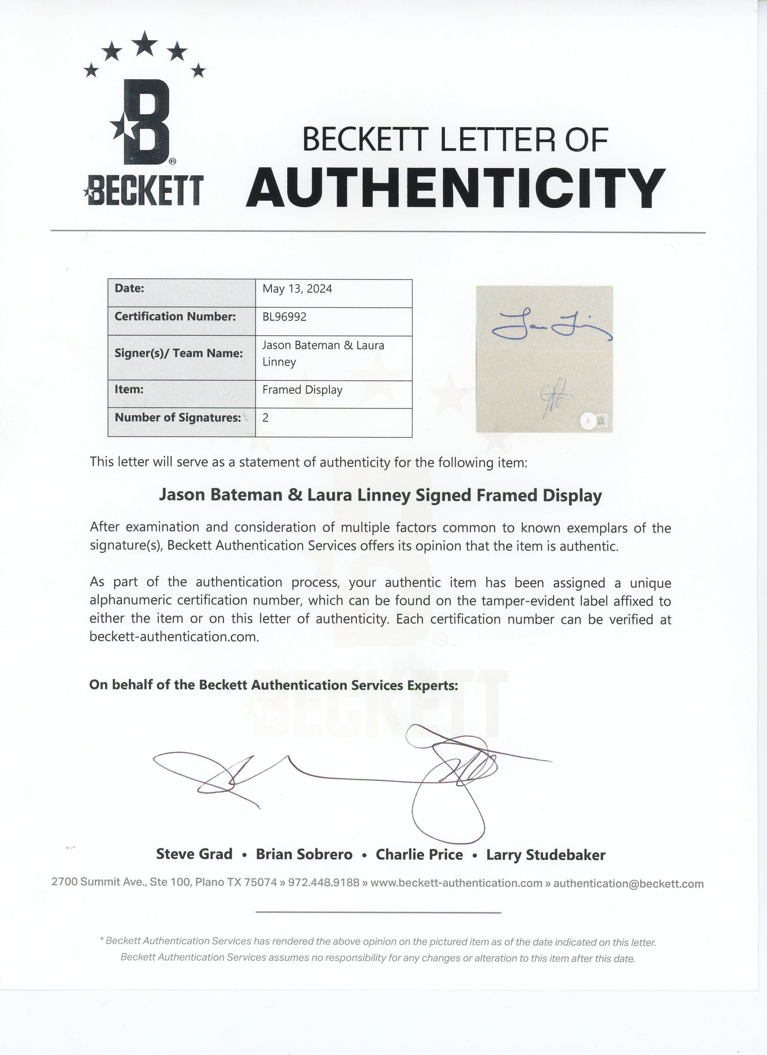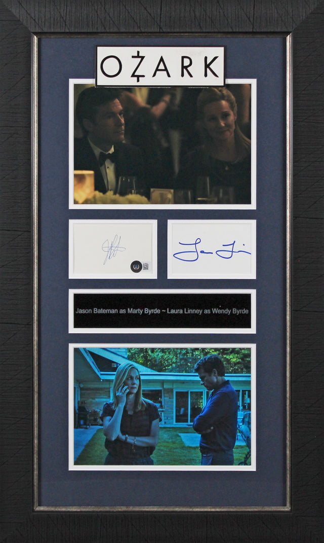 Jason Bateman & Laura Linney Ozark Signed Index Card Framed Display BAS #BL96992