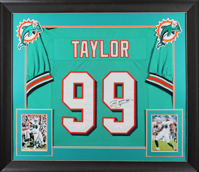 Own a remarkable piece of Miami Dolphins history with this Autographed Teal Pro-Style Framed Jersey, personally signed by Jason Taylor, a legendary defensive end and Hall of Famer. This exclusive collectible is a must-have for Dolphins fans and sports memorabilia enthusiasts.