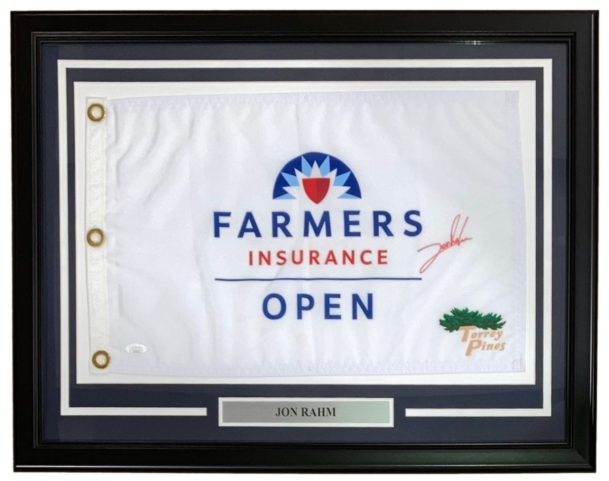 Jon Rahm Signed Framed Farmers Insurance Open Golf Flag JSA