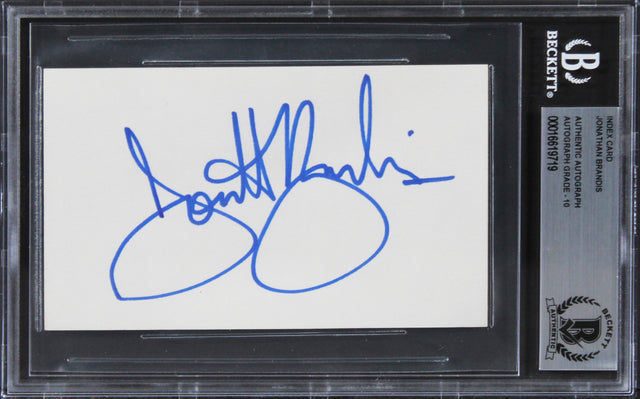 Own a rare piece of pop culture history with this Autographed Auto Graded Gem Mint 10! 3x5 Index Card, personally signed by Jonathan Brandis from Ladybugs. A cherished collectible for fans of 90s cinema, this signed index card is 100% authentic and comes slabbed and authenticated by Beckett Authentication Services (BAS).