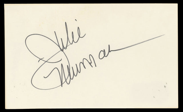 This Julie Newmar autographed 3x5 index card is a must-have collectible for fans of classic Hollywood and The Marriage-Go-Round. Best known for her iconic roles in film and television, including her portrayal of Catwoman in the 1960s *Batman* series, Julie Newmar’s signature is a prized addition for collectors of entertainment memorabilia.