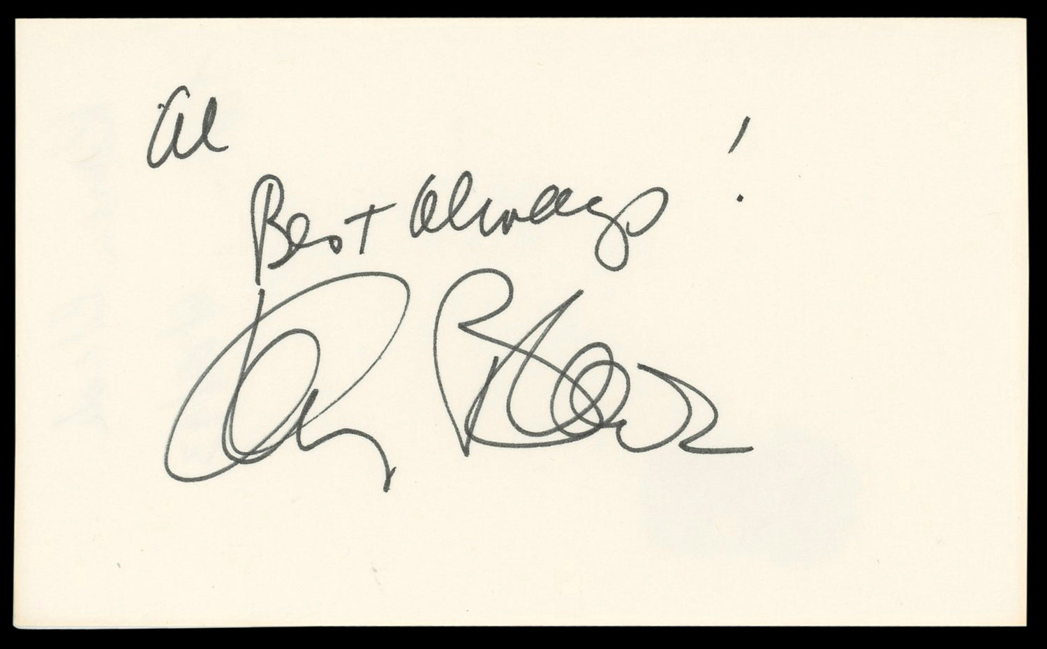 Own a piece of Hollywood history with this Karen Black Autographed 3x5 Index Card, personally signed with the inscription "Al, Best Always." Karen Black is best known for her iconic roles in films like The Great Gatsby (1974), Easy Rider (1969), and Five Easy Pieces (1970), making this a must-have collectible for classic cinema enthusiasts.
