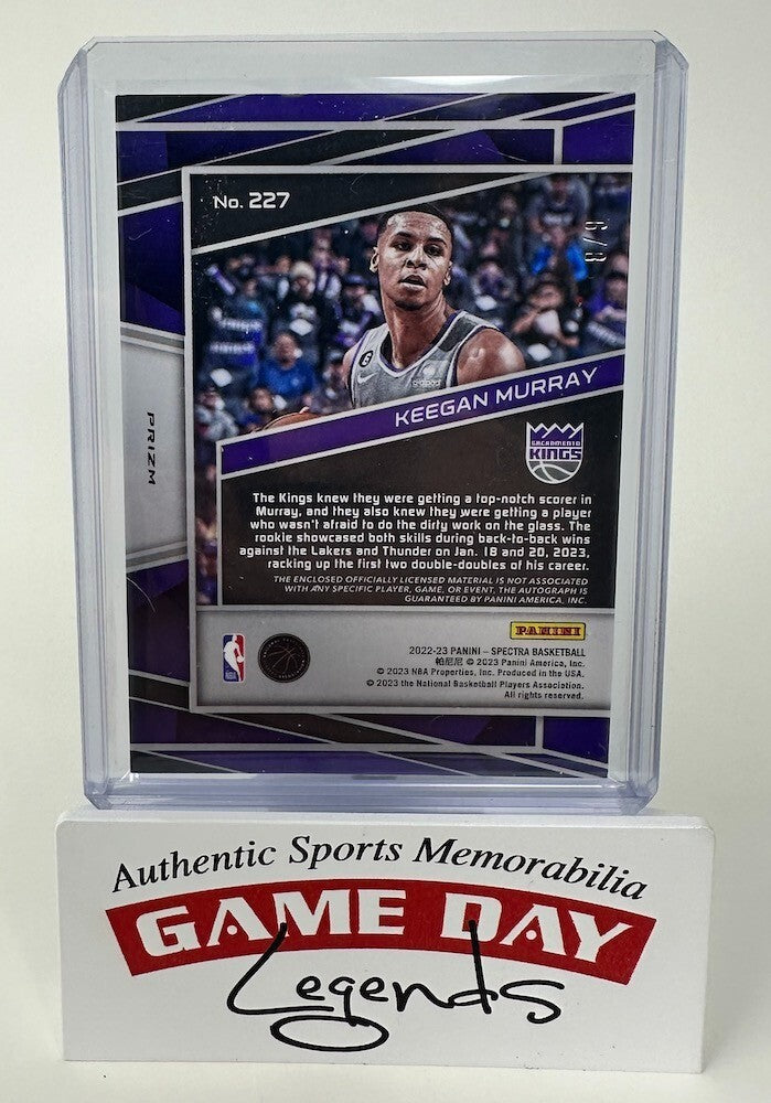 With its highly limited availability and authentic player signature, this Keegan Murray autographed Panini Spectra card is a valuable addition to any NBA fan's collection. Don’t miss the opportunity to own a piece of basketball history—order now before it’s gone!
