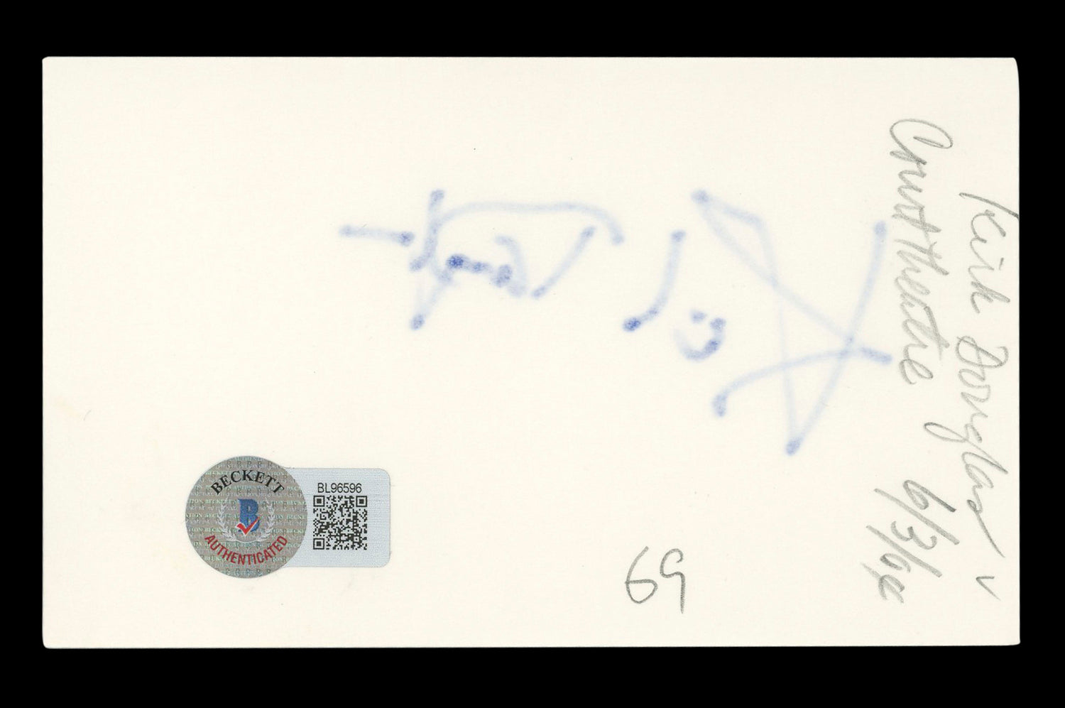 Kirk Douglas Spartacus Authentic Signed 3x5 Index Card Autographed BAS #BL96596