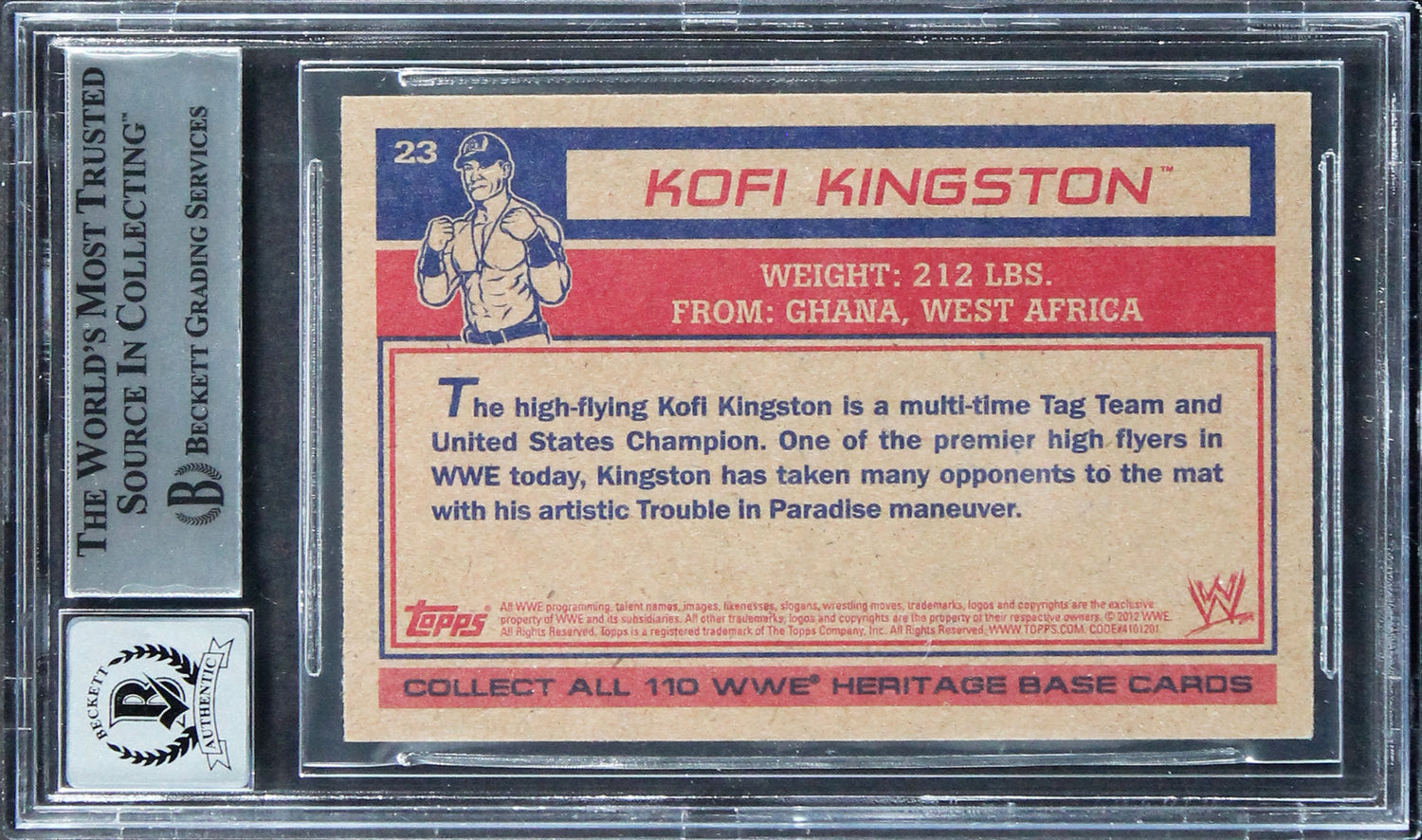 Kofi Kingston Signed 2012 Topps Heritage WWE #23 Card Auto 10! BAS Slabbed