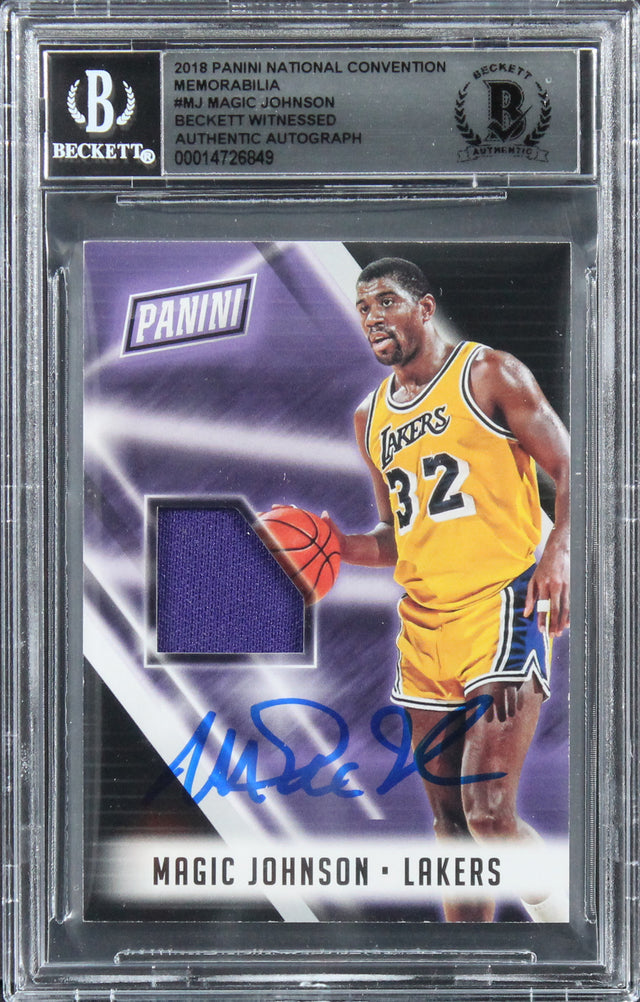 Magic Johnson Signed 2018 Panini National Convention Mem #MJ Card BAS Slabbed