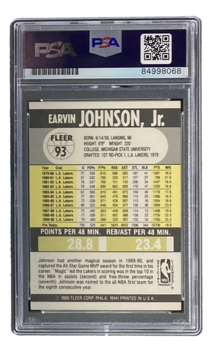 Magic Johnson Signed LA Lakers 1990 Fleer #93 Trading Card PSA/DNA Gem MT 10