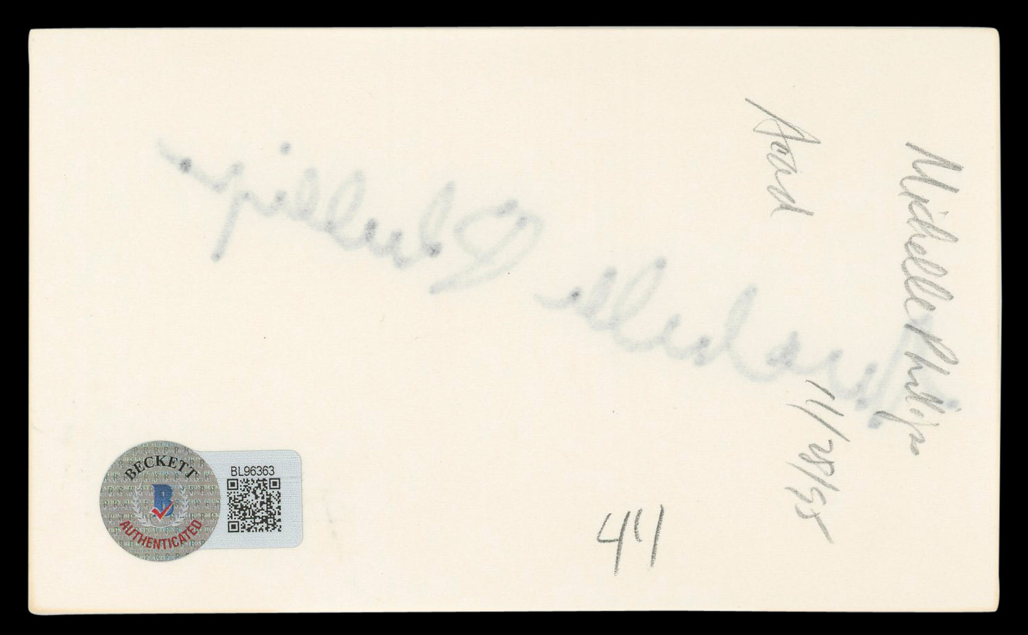 Michelle Phillips Valentino Authentic Signed 3x5 Index Card BAS #BL96363