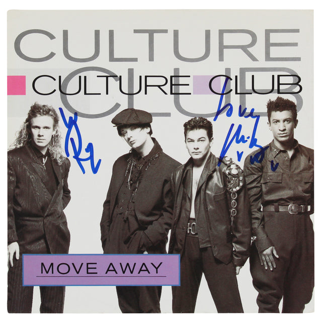 Own a piece of pop culture history with this Autographed "Move Away" 45 RPM Album Cover (without vinyl), personally signed by Mikey Craig & Roy Hay of Culture Club. A must-have for collectors and fans of the iconic 1980s band, this rare signed cover celebrates the group's enduring legacy.