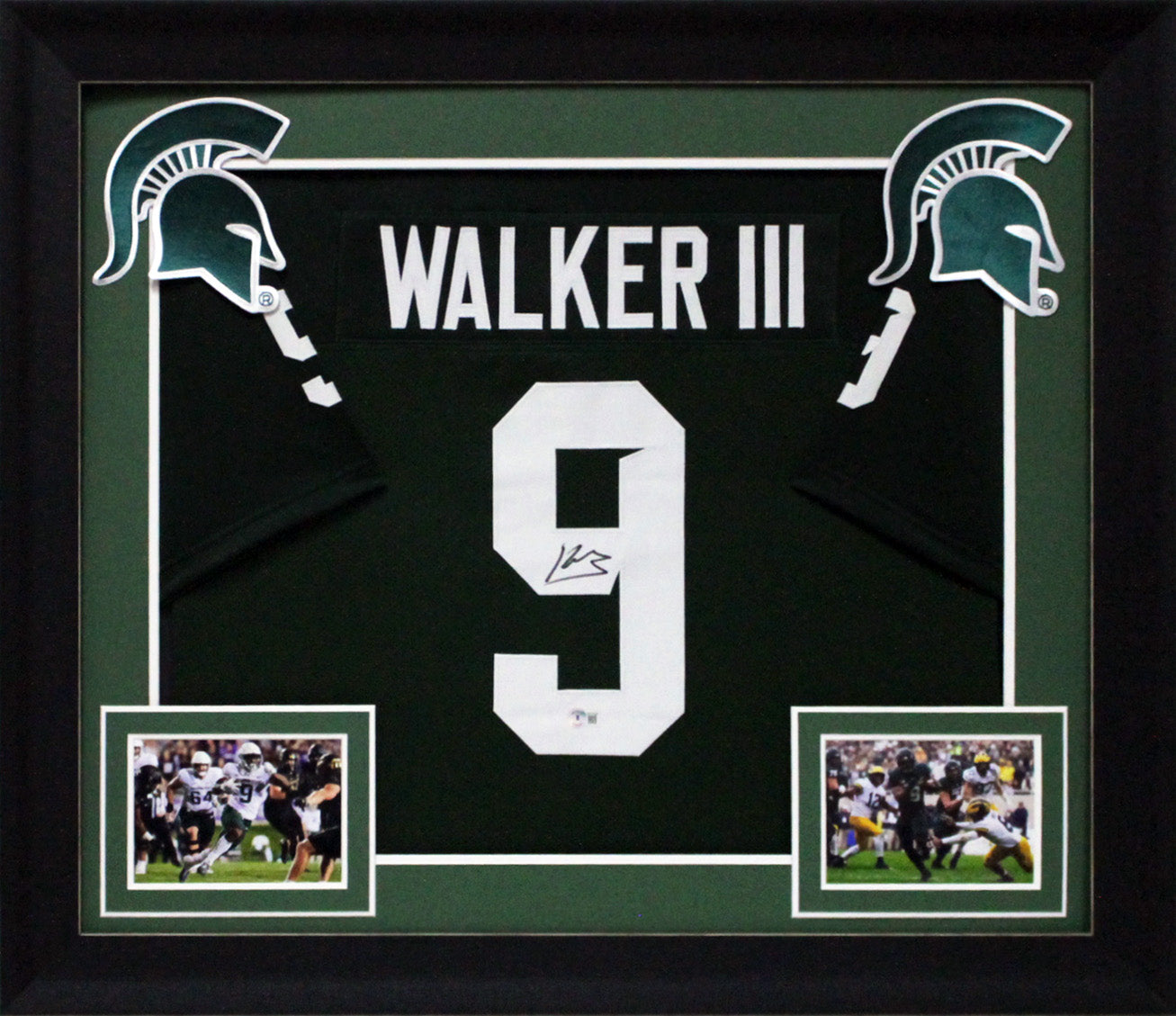 MSU Kenneth Walker III Signed Green Pro Style Framed Jersey BAS Witnessed