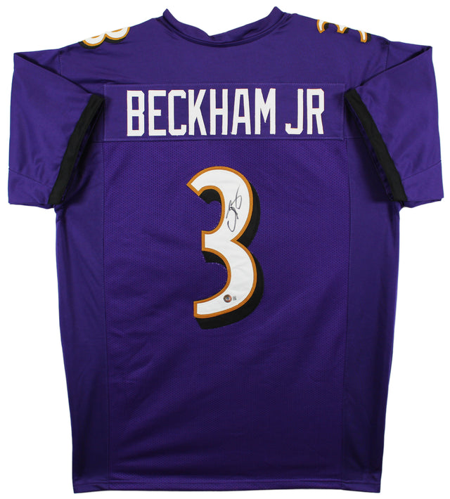 Own a piece of Baltimore Ravens history with this Autographed Purple Pro Style Jersey, personally signed by superstar wide receiver Odell Beckham Jr. This exclusive memorabilia is 100% Authentic, verified by Beckett Authentication Services (BAS), ensuring its legitimacy.