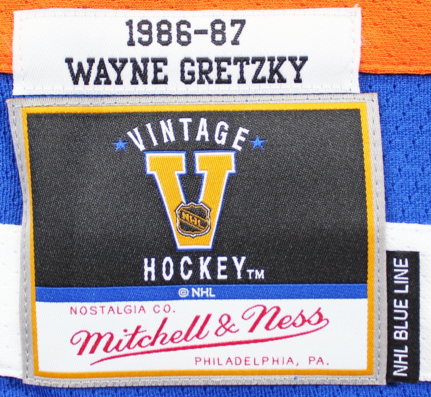 Own a piece of hockey history with this Autographed Blue 1986-87 Vintage Hockey Mitchell & Ness NHL Blue Line Jersey, personally signed by the legendary Wayne Gretzky of the Edmonton Oilers. Celebrating one of the most iconic eras in hockey, this jersey is a must-have for serious collectors and fans of "The Great One."