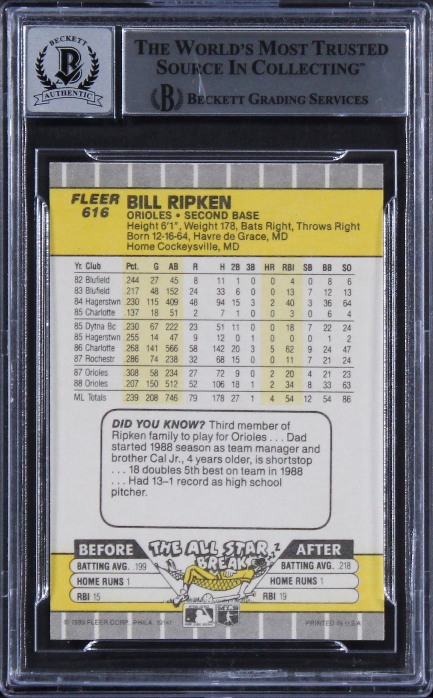 Orioles Billy Ripken Authentic Signed 1989 Fleer #616E Card Auto 10! BAS Slabbed