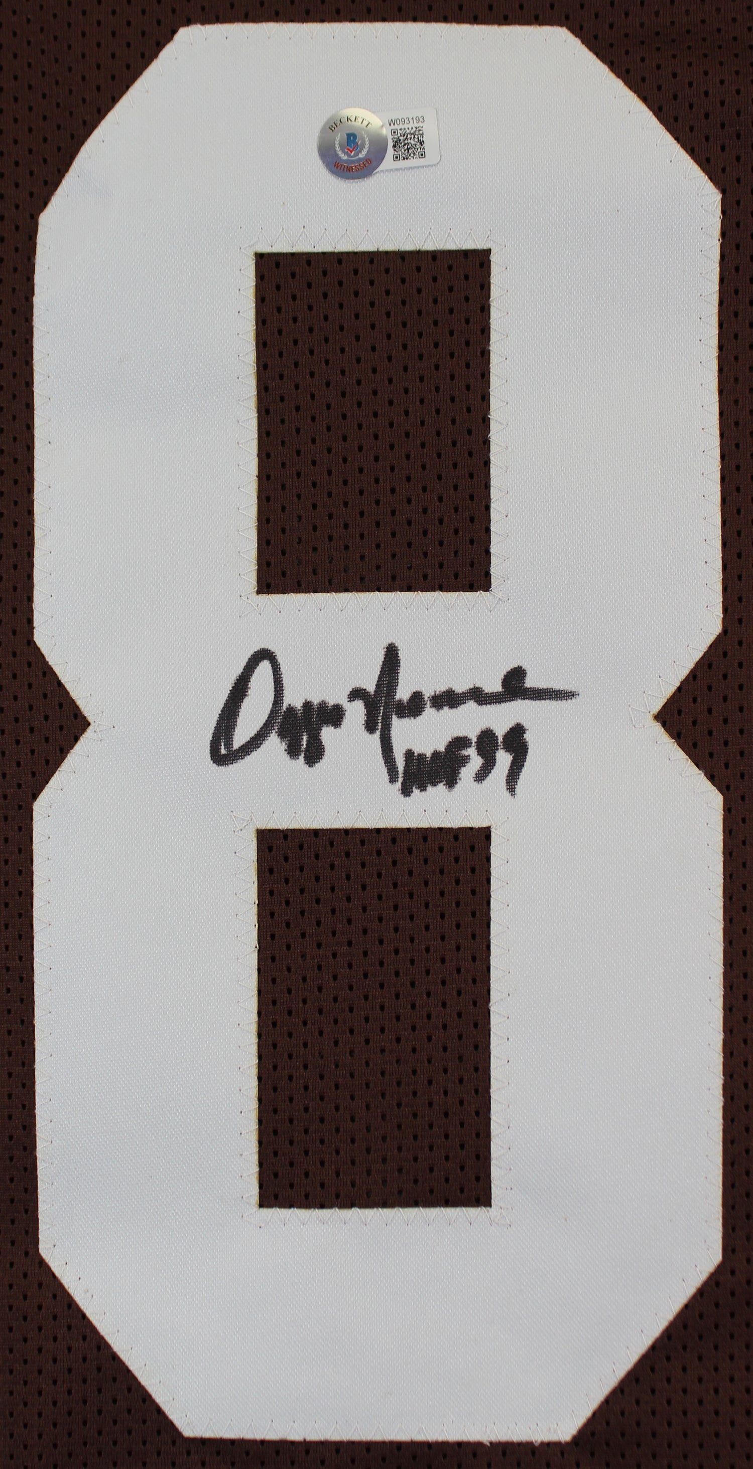 Own a piece of Cleveland Browns history with this Autographed Brown Pro Style Jersey, personally signed by Ozzie Newsome with the exclusive "HOF 99" inscription. A must-have for fans and collectors, this jersey is 100% authentic and comes with a certified Beckett Authentication Services (BAS) hologram for verification.