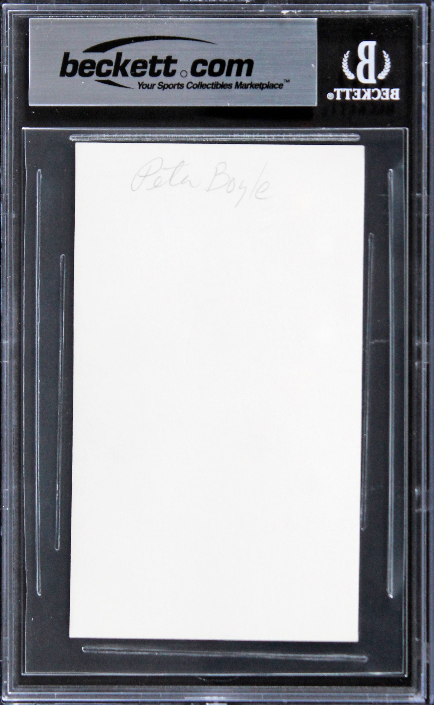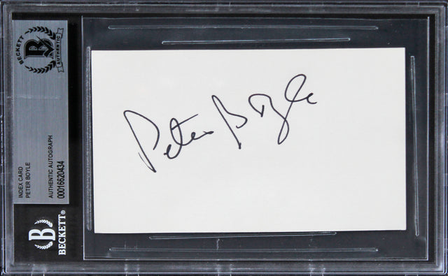 Own a piece of cinematic history with this Autographed 3x5 Index Card, personally signed by Peter Boyle, the acclaimed actor known for his unforgettable role in Taxi Driver. This rare collectible has been slabbed and authenticated by Beckett Authentication Services, ensuring its 100% authenticity.