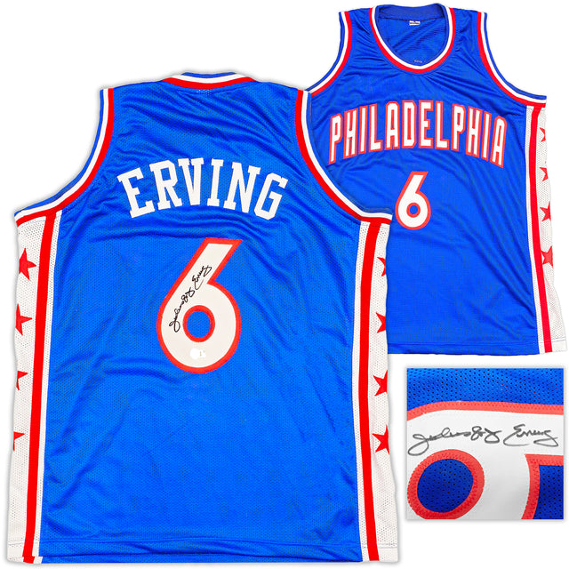 Philadelphia 76ers Julius "Dr. J" Erving Autographed Blue Jersey Beckett BAS Witness Stock #230291 is backordered and will ship as soon as it is back in stock.