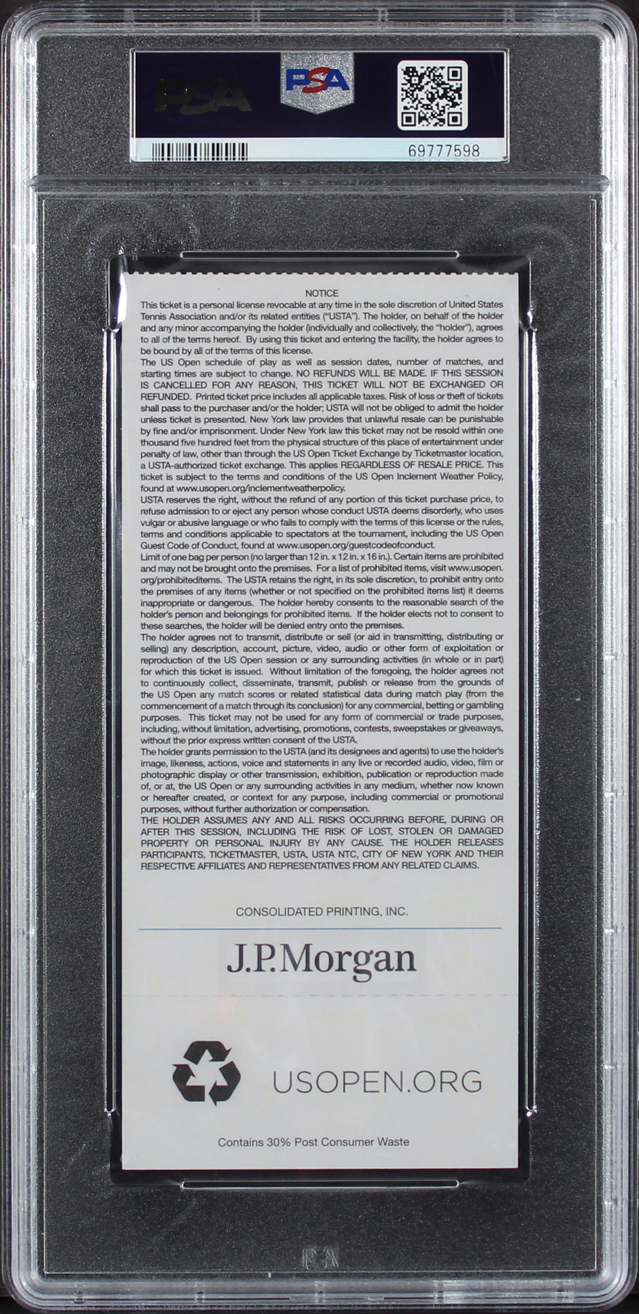 Whether you're a die-hard Rafael Nadal fan, a dedicated tennis memorabilia collector, or simply looking for an investment-worthy piece, this signed 2017 US Open ticket stub is a must-have. Don't miss your chance to own a tangible piece of Grand Slam history!