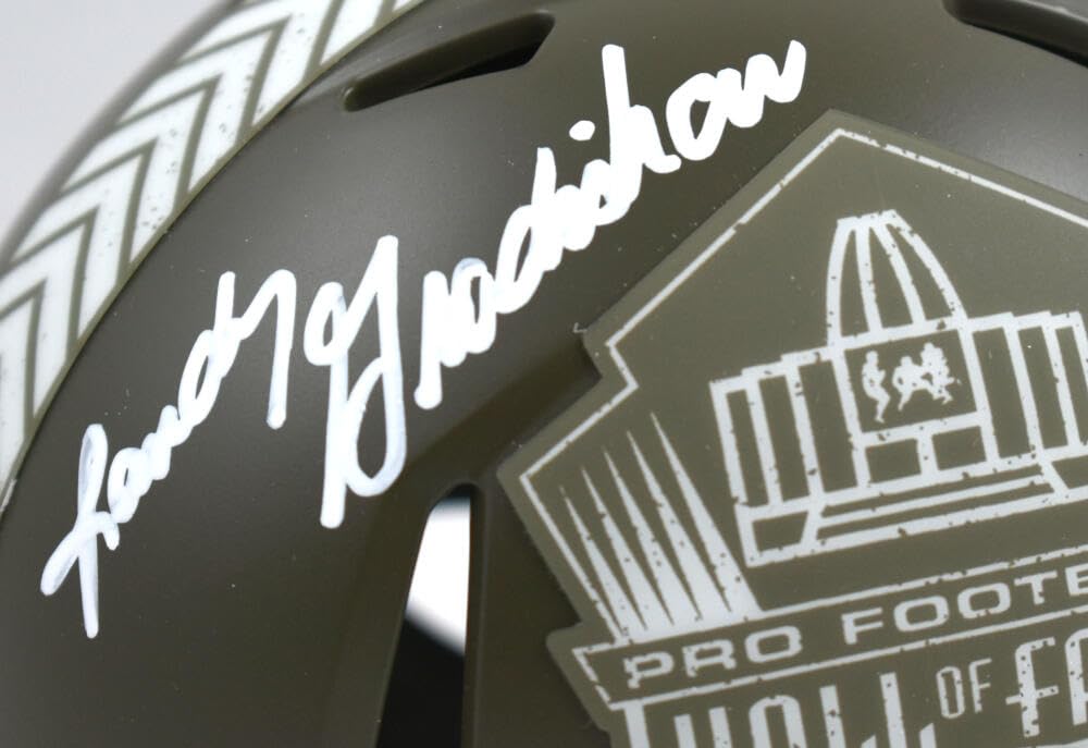 Randy Gradishar Signed Broncos Salute to Service Speed Mini Helmet w/HOF-BAWHolo is backordered and will ship as soon as it is back in stock.