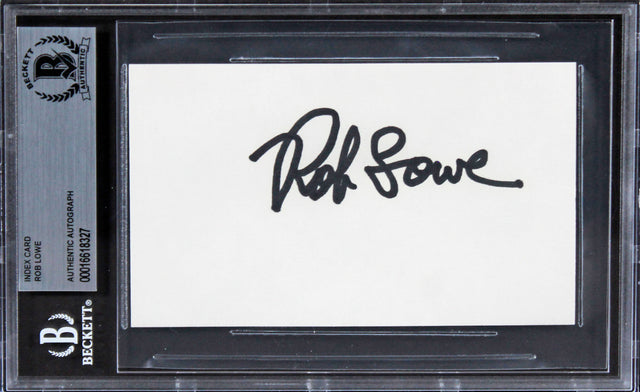 Own a piece of Hollywood history with this Rob Lowe Autographed 3x5 Index Card, personally signed by the iconic actor best known for his role in The Outsiders. This collectible is a must-have for fans of classic cinema and pop culture enthusiasts. Each item is 100% authentic and has been slabbed and authenticated by Beckett Authentication Services (BAS), ensuring its integrity and value.