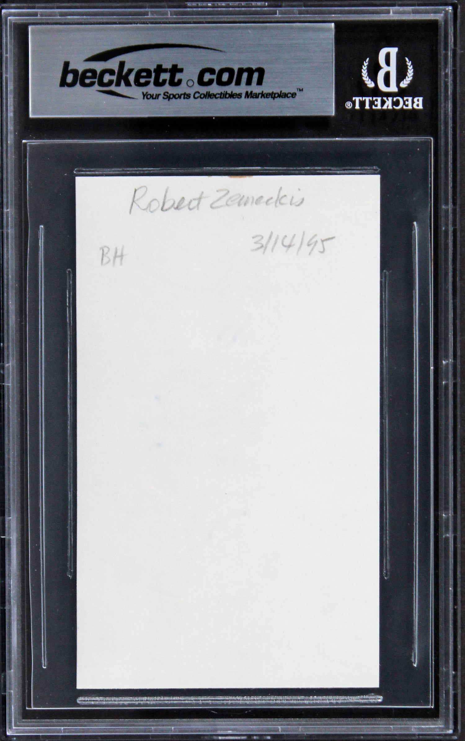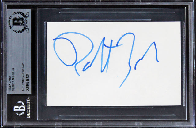 Own a piece of cinematic history with this Robert Zemeckis Autographed 3x5 Index Card—a must-have for fans of Back to the Future and legendary filmmakers. This collectible is 100% Authentic, professionally slabbed and authenticated by Beckett Authentication Services (BAS) to ensure its legitimacy.