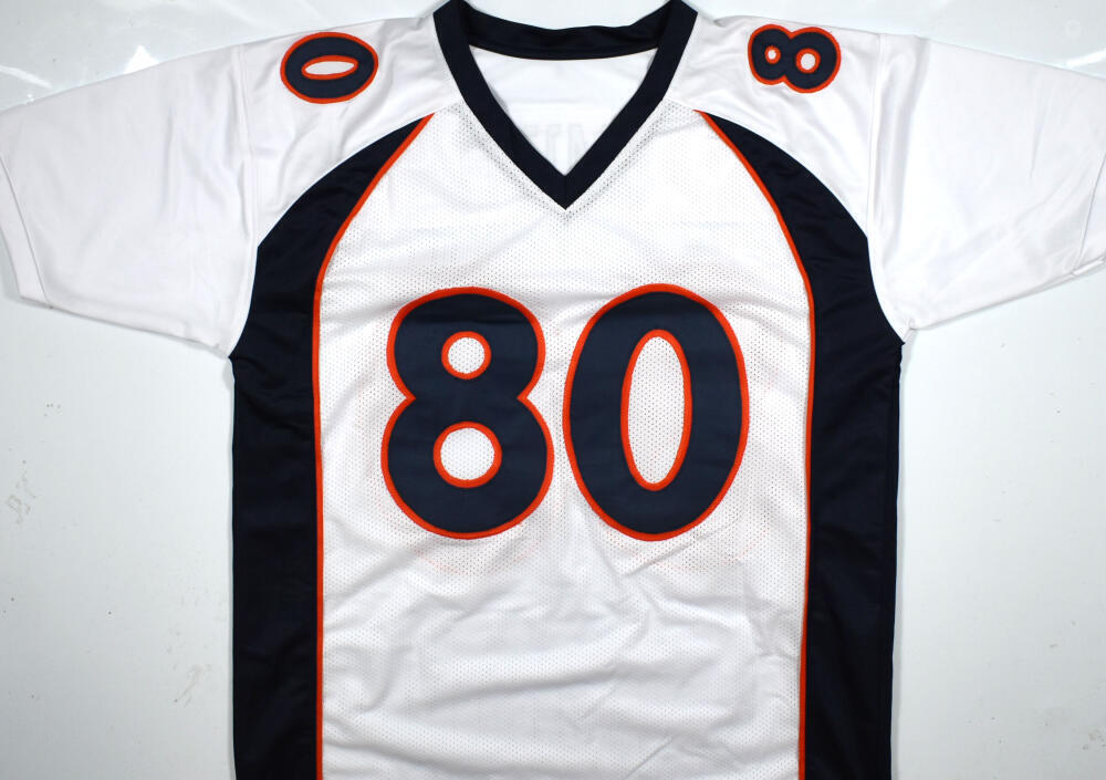 Own a piece of football history with this Rod Smith Autographed Custom Jersey—a must-have for Denver Broncos fans and collectors alike! This authentic style, non-branded jersey features stitched letters and numbers, making it a high-quality display item for any memorabilia collection.