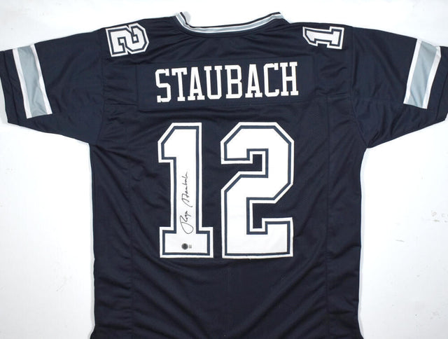 Roger Staubach Autographed Blue Pro Style Jersey-Beckett W Hologram *Black is backordered and will ship as soon as it is back in stock.