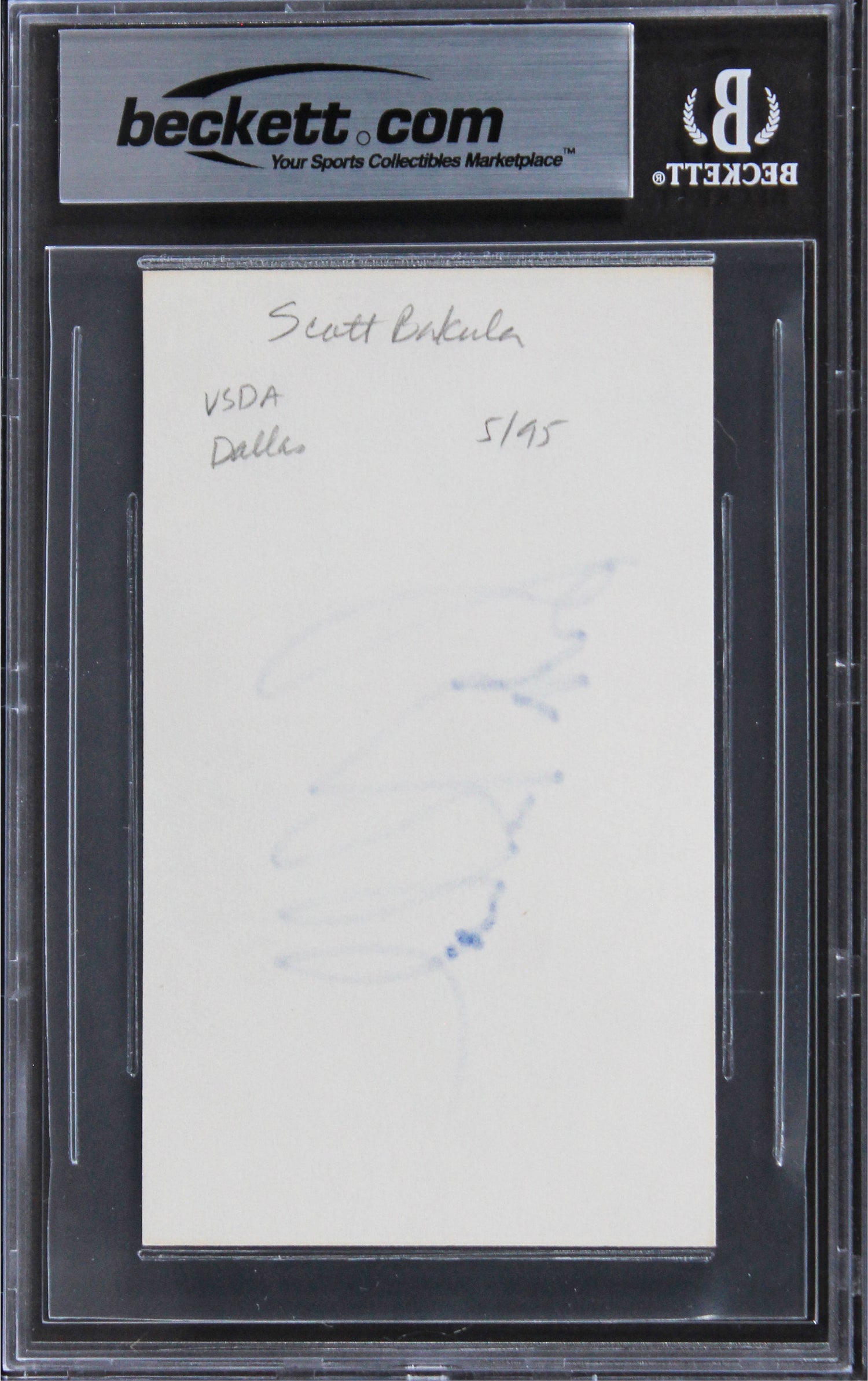 Own a piece of sci-fi history with this Scott Bakula Autographed 3x5 Index Card, personally signed by the legendary actor best known for his role as Captain Jonathan Archer in Star Trek: Enterprise. This collectible is 100% authentic, slabbed and authenticated by Beckett Authentication Services, ensuring its value and legitimacy.