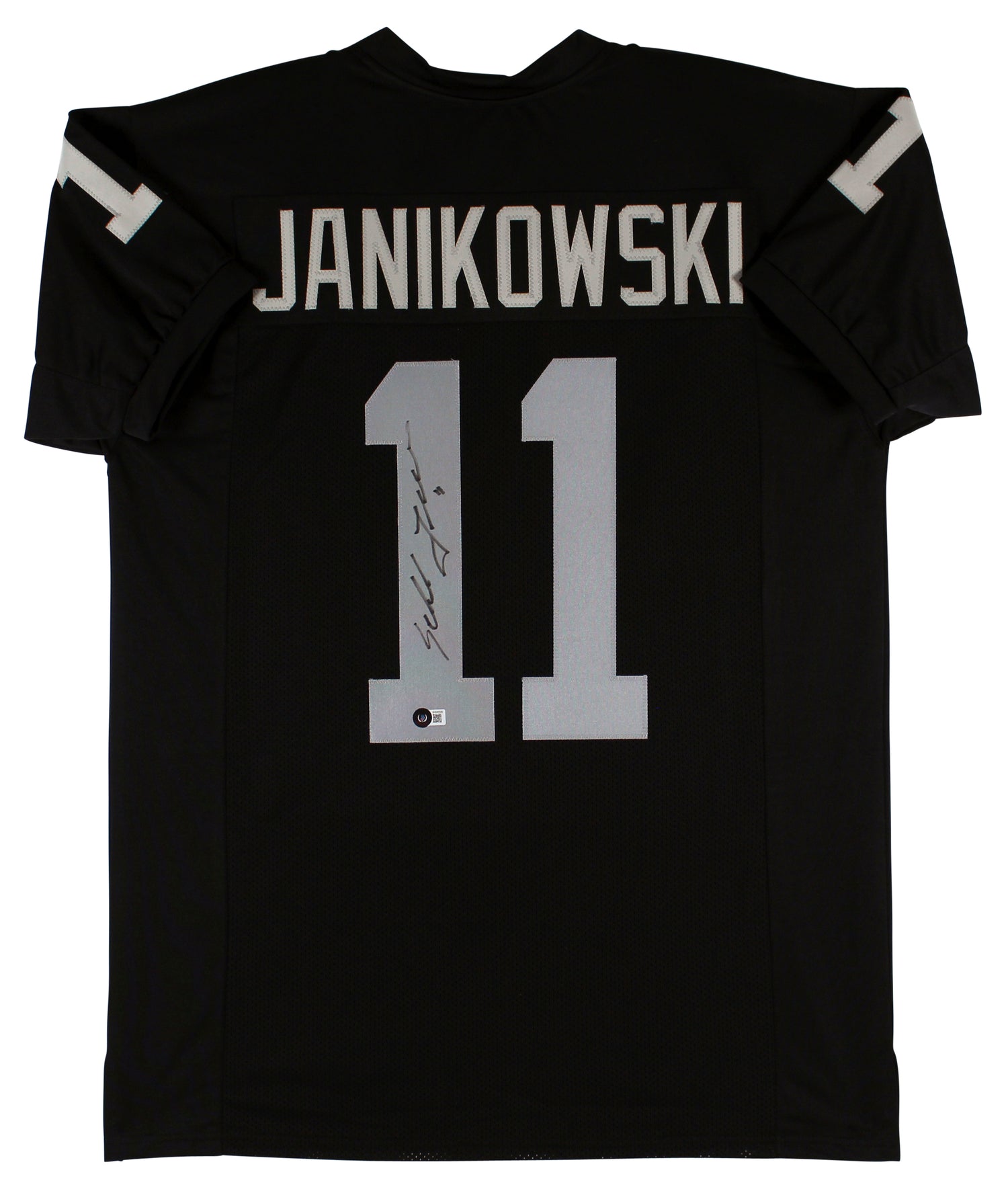 This Autographed Black Pro Style Jersey has been personally signed by Sebastian Janikowski, the legendary kicker for the Oakland Raiders. A must-have for dedicated Raiders fans and sports memorabilia collectors, this jersey showcases the signature of one of the most powerful and accurate kickers in NFL history. This item is 100% authentic, featuring a tamper-proof Beckett Authentication Services (BAS) hologram for verification. The attached BAS sticker includes a scannable QR code to confirm authenticity. No serial-numbered COA card is provided, as Beckett now uses the authentication sticker as the official proof of authenticity. Key features of this Sebastian Janikowski autographed jersey: