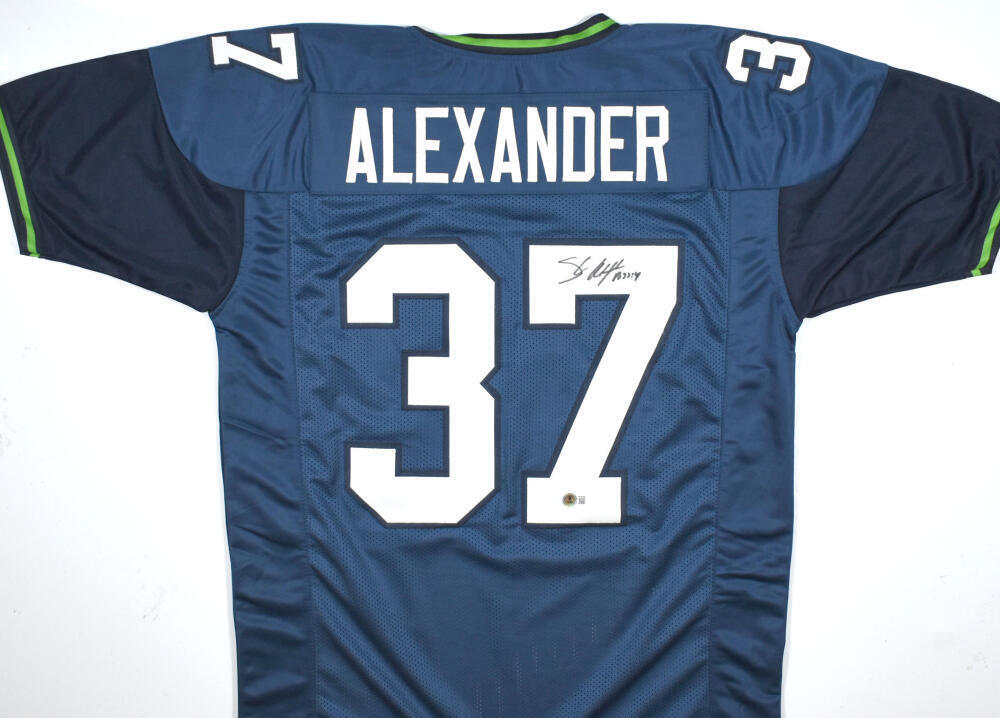 Own a piece of football history with this Shaun Alexander hand-signed custom jersey, a must-have for collectors and fans alike. While this is not an official NFL jersey, it is an authentic-style custom piece featuring stitched letters and numbers, making it a fantastic display item for Seahawks enthusiasts and memorabilia collectors.