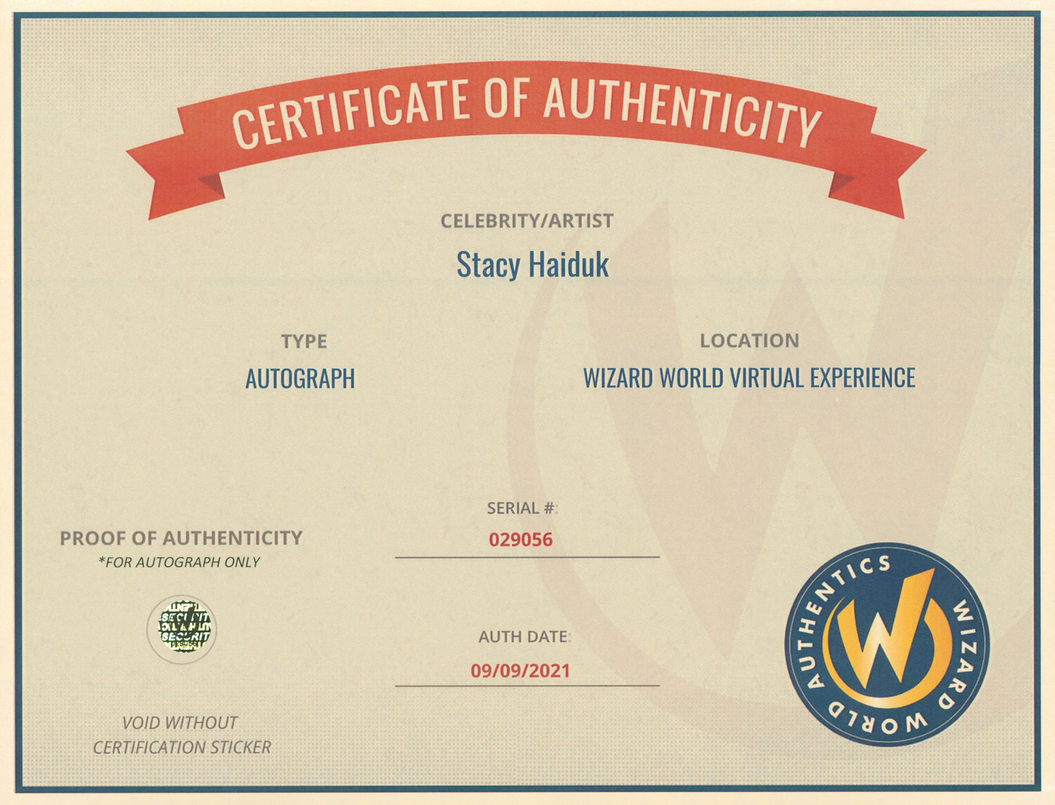 - Hand-signed by Stacy Haiduk, making each autograph unique.