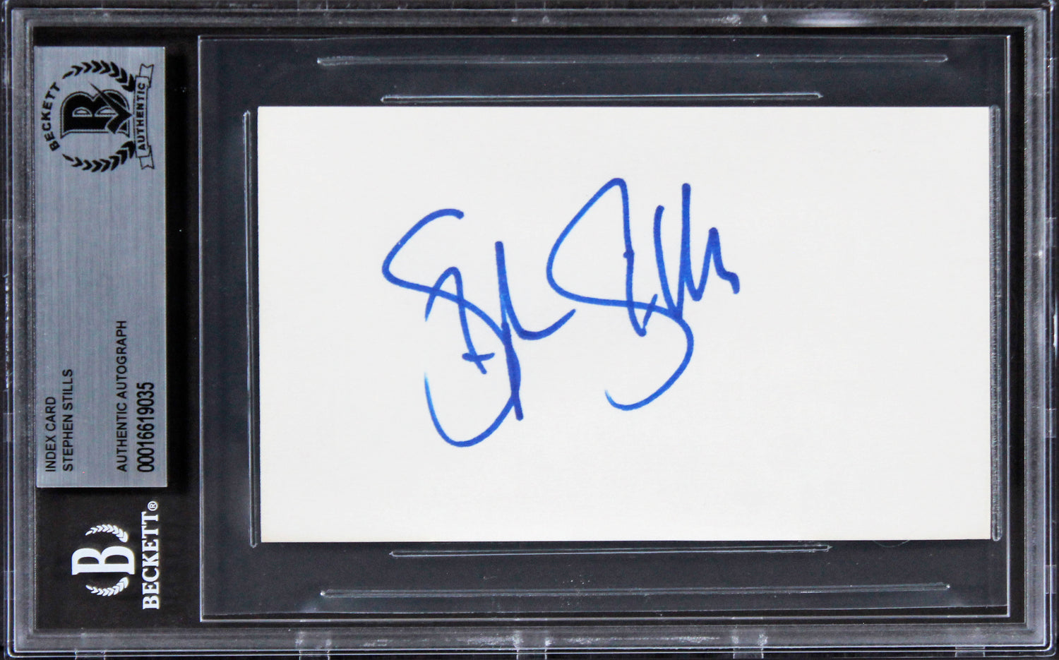 Stephen Stills Buffalo Springfield Authentic Signed 3x5 Index Card BAS Slabbed 3
