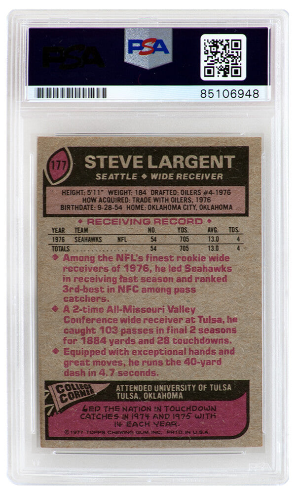 Steve Largent Signed Seattle Seahawks 1977 Topps Rookie Football Card #177 w/HOF'95 - (PSA Encapsulated)
