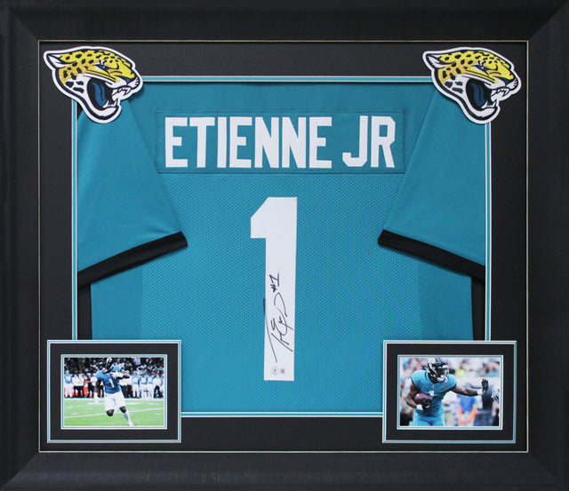 Own a piece of Jacksonville Jaguars history with this Autographed Teal Pro Style Framed Jersey, personally signed by Travis Etienne. A standout playmaker, Etienne has electrified fans with his speed and skill, making this signed jersey a prized collectible for Jaguars enthusiasts and memorabilia collectors alike.