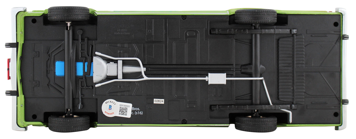 Relive the nostalgia of National Lampoon's Vacation with this autographed 1:18 scale Wagon Queen Family Truckster, personally signed by legendary cast members Chevy Chase, Beverly D'Angelo, Anthony Michael Hall, and Dana Barron. This collectible is a must-have for fans of the beloved 1983 comedy and serious memorabilia collectors alike.