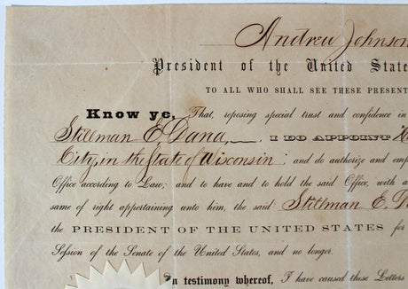 Andrew Johnson Signed 9.65x13.85 1865 Appointment Document PSA/DNA #AC08040