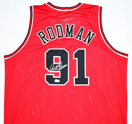 Dennis Rodman Autographed Red Jersey - Beckett W Hologram *Silver
