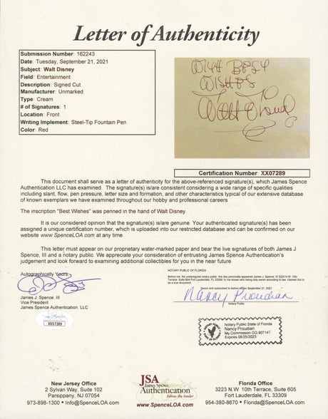 Walt Disney "With Best Wishes" Authentic Signed 4.5x6.5 Cut JSA #XX07289