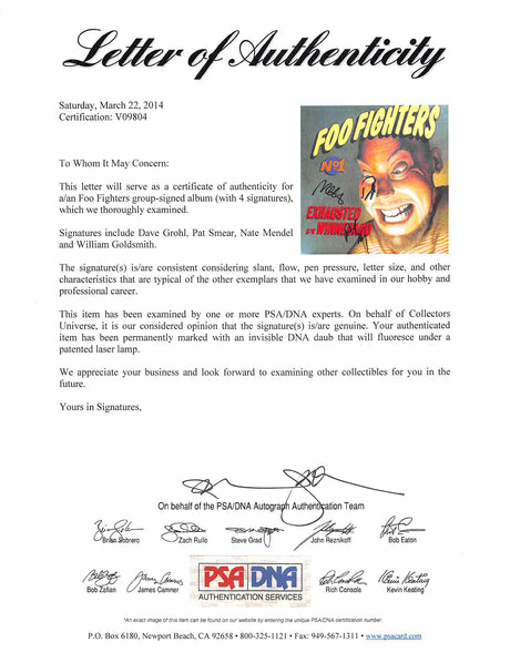 Foo Fighters (4) Signed Exhausted Winnebago Album Cover W/ Vinyl PSA/DNA #V09804
