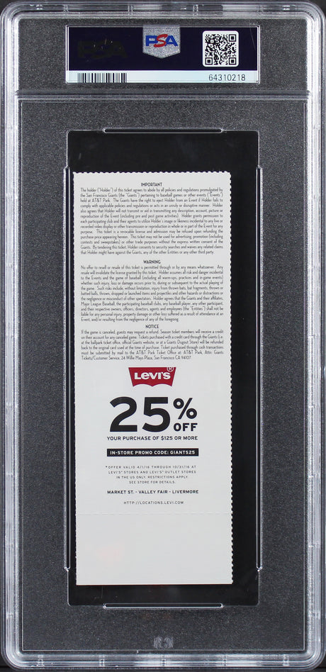 Dodgers Vin Scully Signed Final Game Full Ticket Stub Grade Auto 10! PSA Slabbed