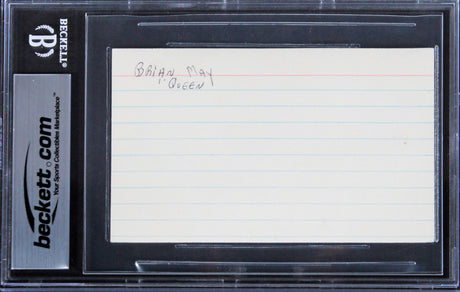 Brian May Queen "84" Authentic Signed 3x5 Index Card Autographed BAS Slabbed