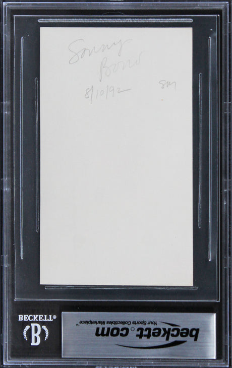 Very low stock (1 unit)$79Unit price /UnavailableSonny Bono The Sonny and Cher Show Authentic Signed 3x5 Index Card BAS Slabbed